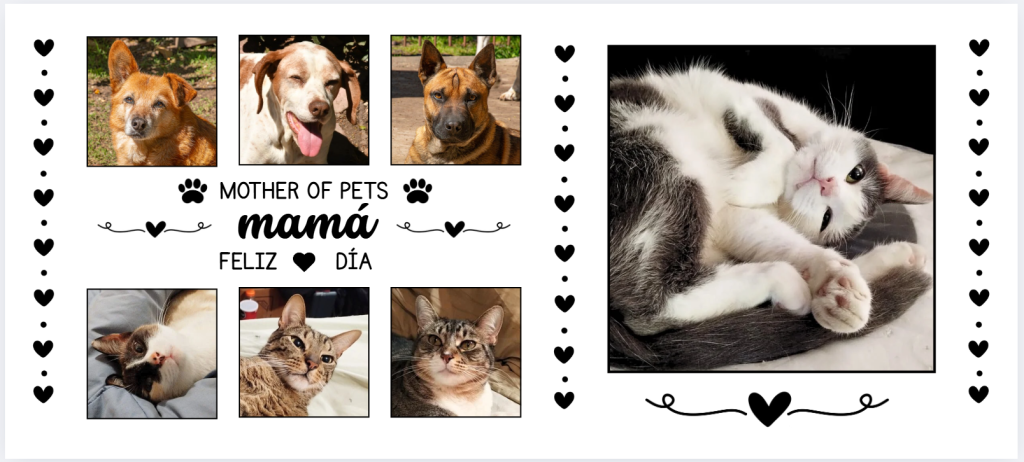 🖼️ Solo tenés que enviarme las fotos de tus mascotas. Si hace falta, las edito (¡sí, incluso si tu perro salió con cara de lunes!). Después las acomodo en el diseño para que queden listas para sublimar.